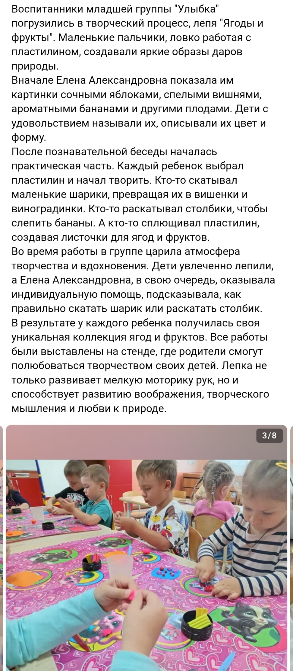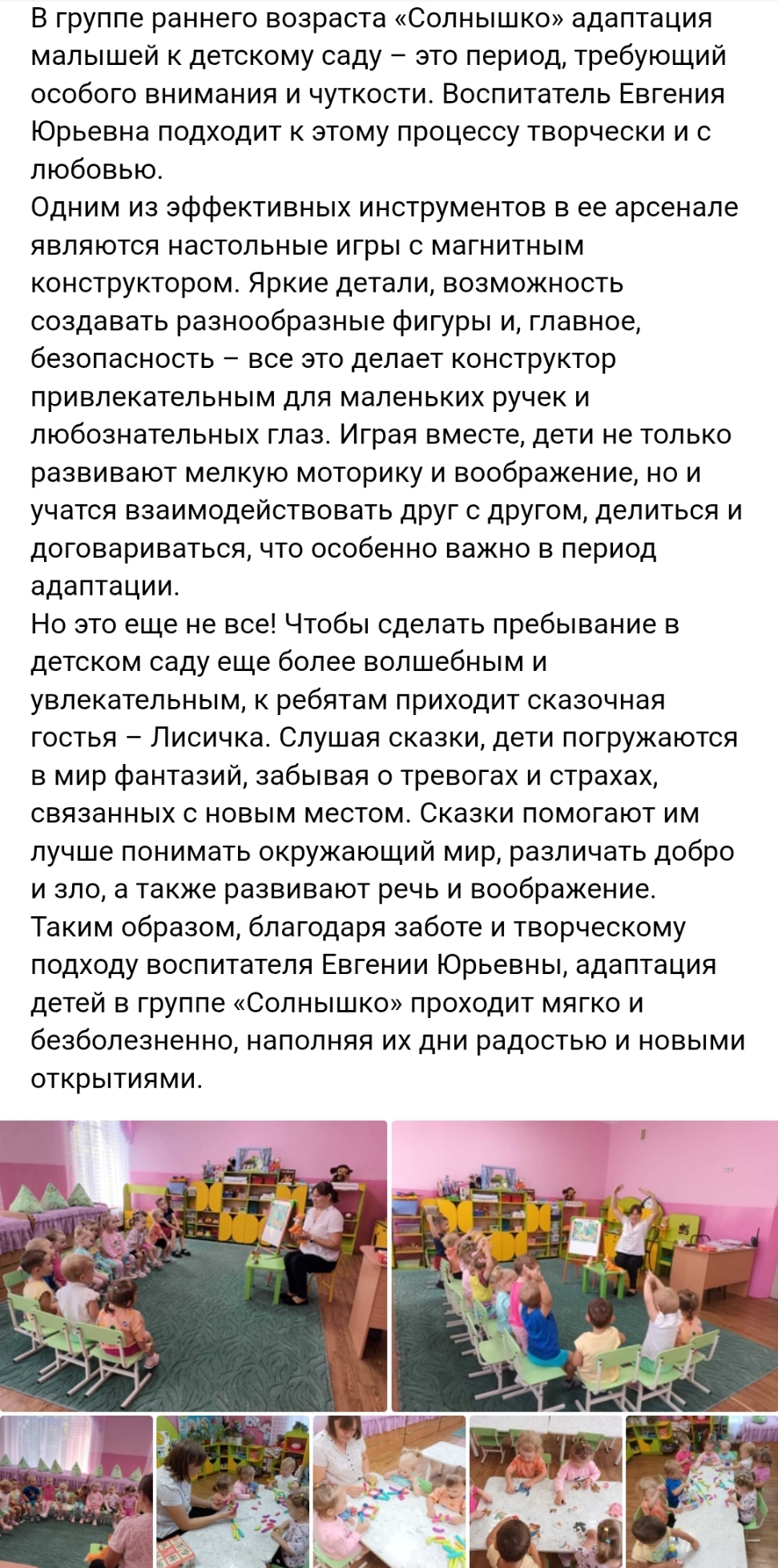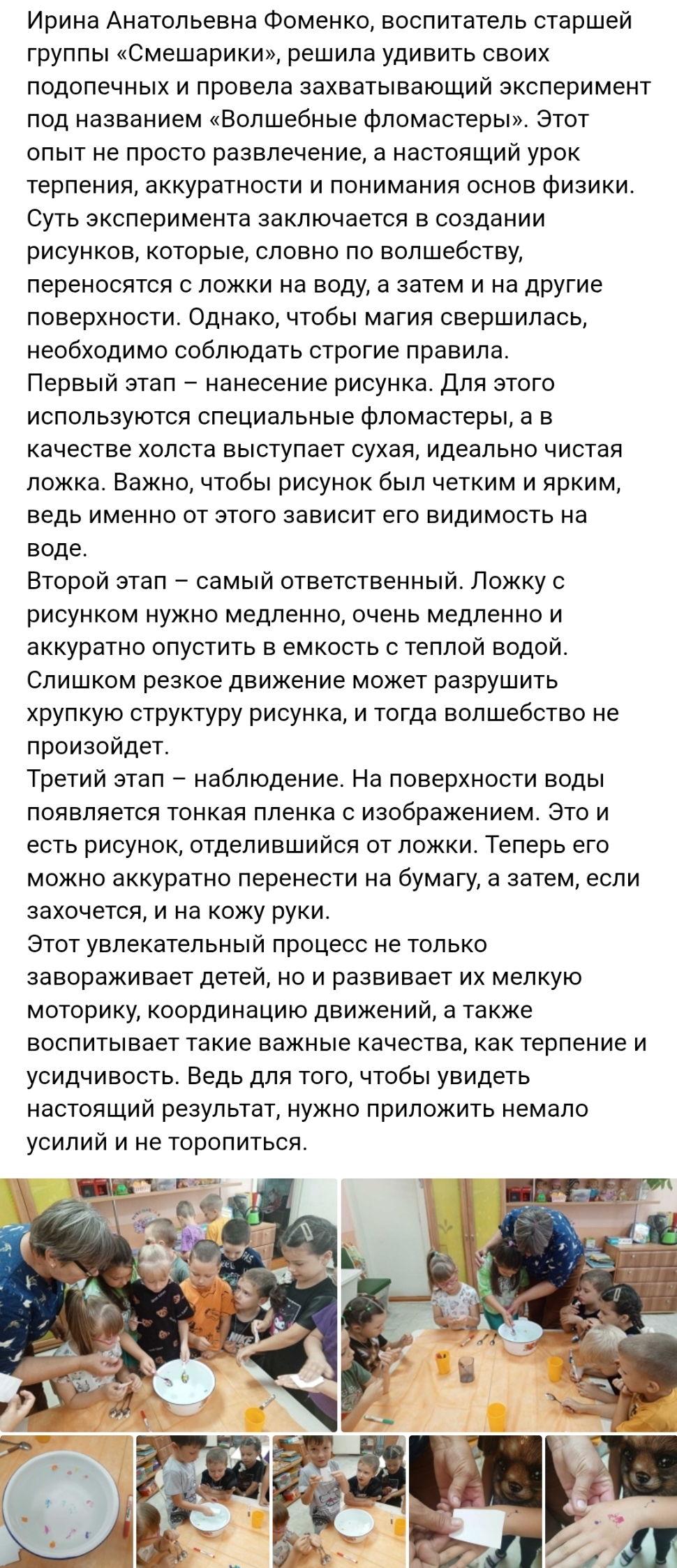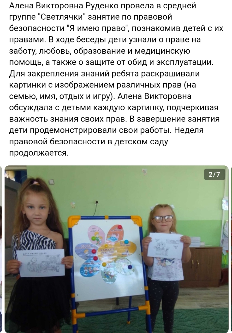 По словам победительницы, главное, что помогло ей одержать победу, - большая подготовка, методическая помощь со стороны руководителя детского сада Головиной Ольги Анатольевны и поддержка коллег.