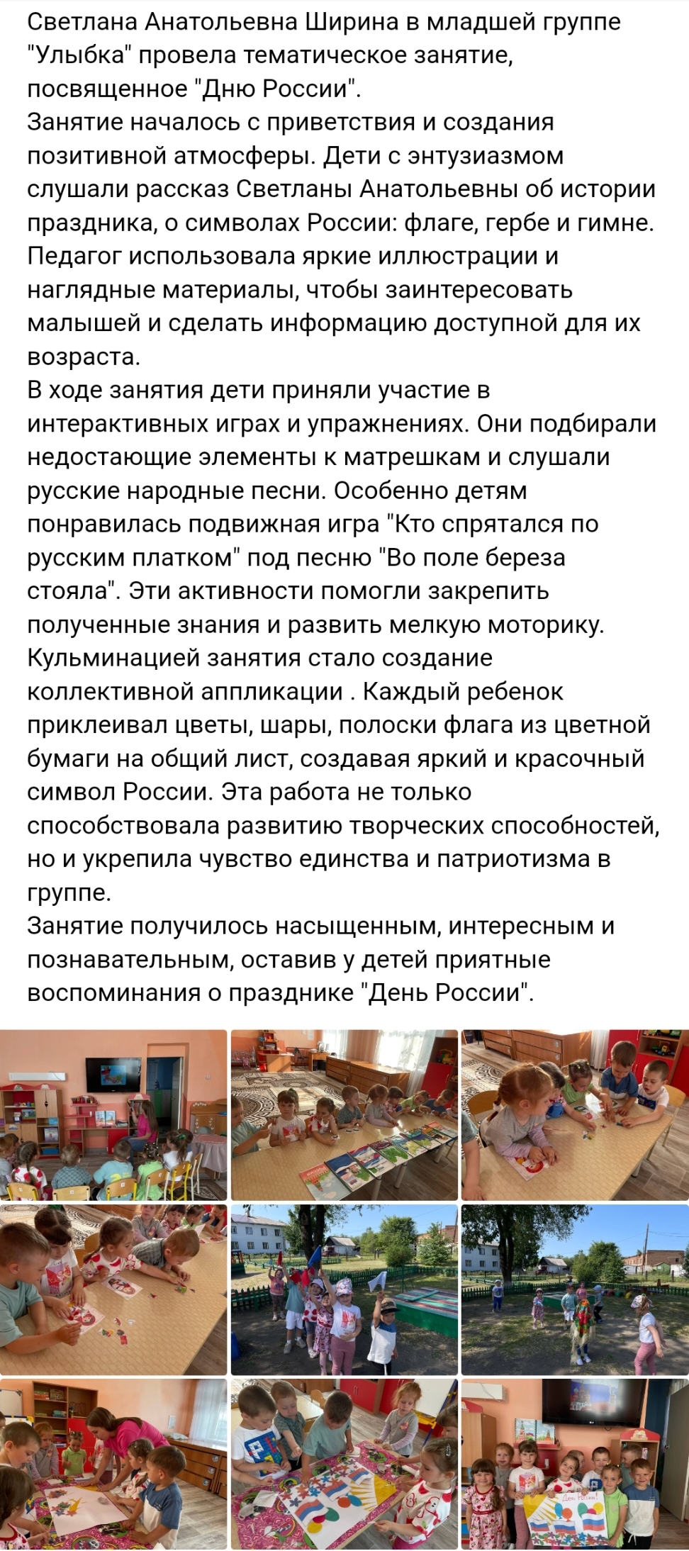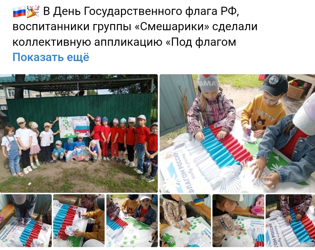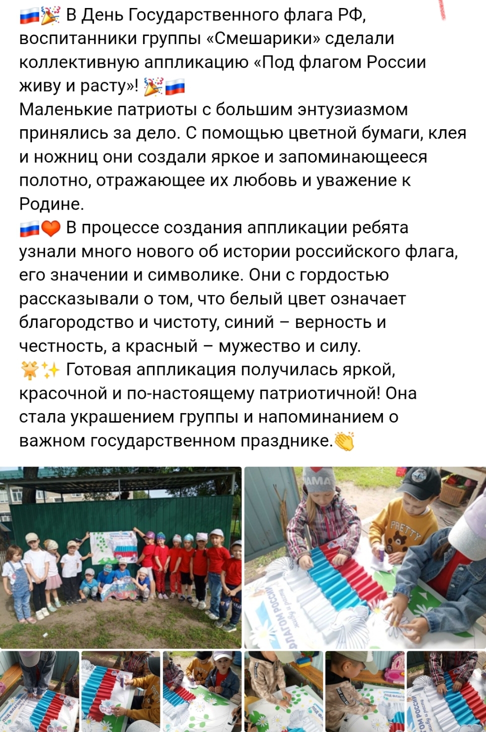 Коллективная аппликация в старшей группе "Под флагом России"