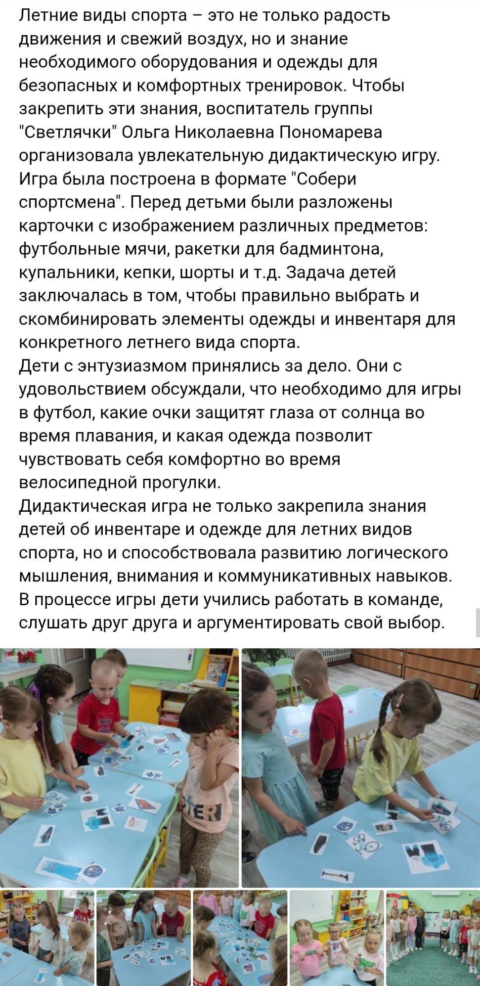 Дидактическая игра "Летние виды спорта"