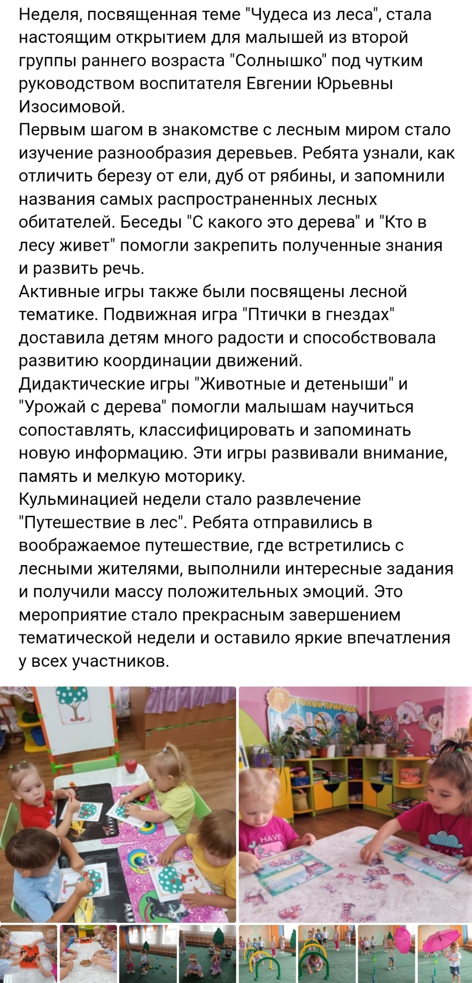 "Чудеса из леса" во второй группе раннего возраста "Солнышко"