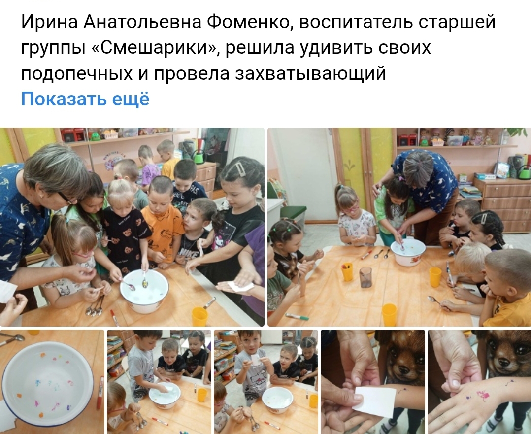 Экспериментирование в старшей группе "Смешарики"