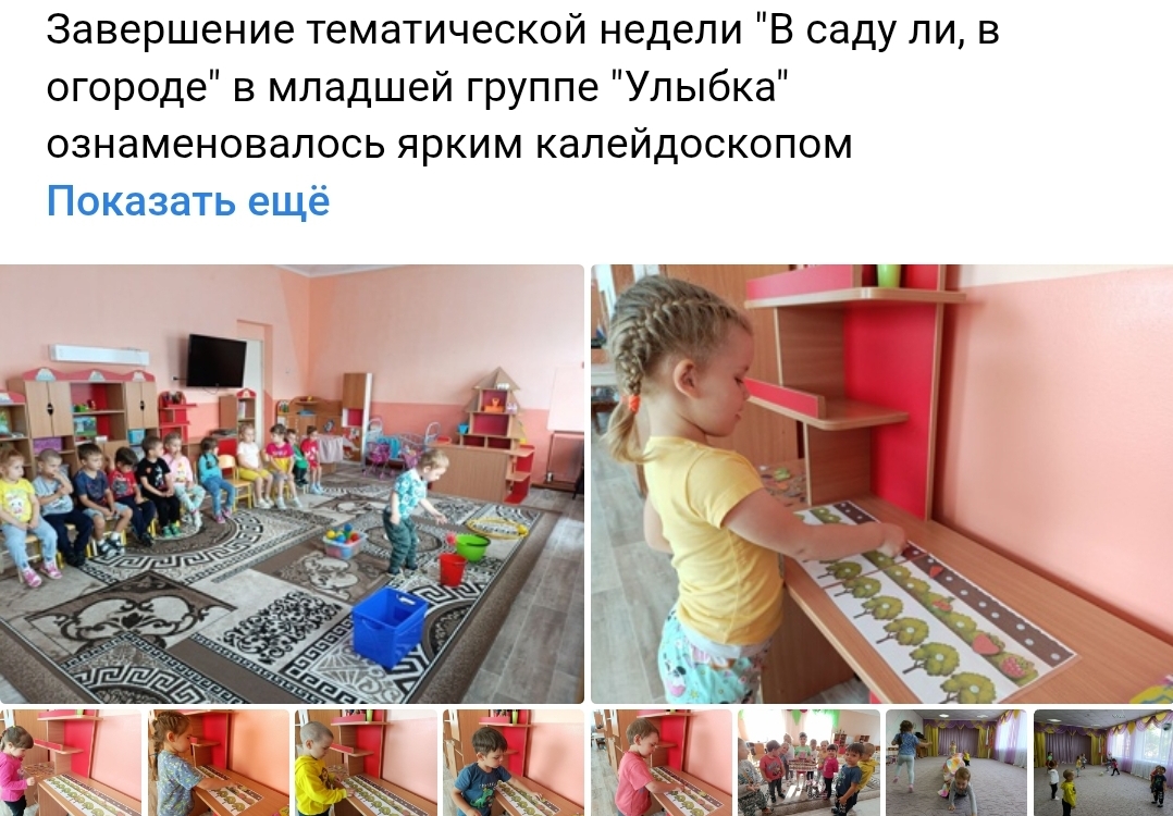 Тематическая неделя "Во саду ли, в огороде" в младшей группе "Улыбка"