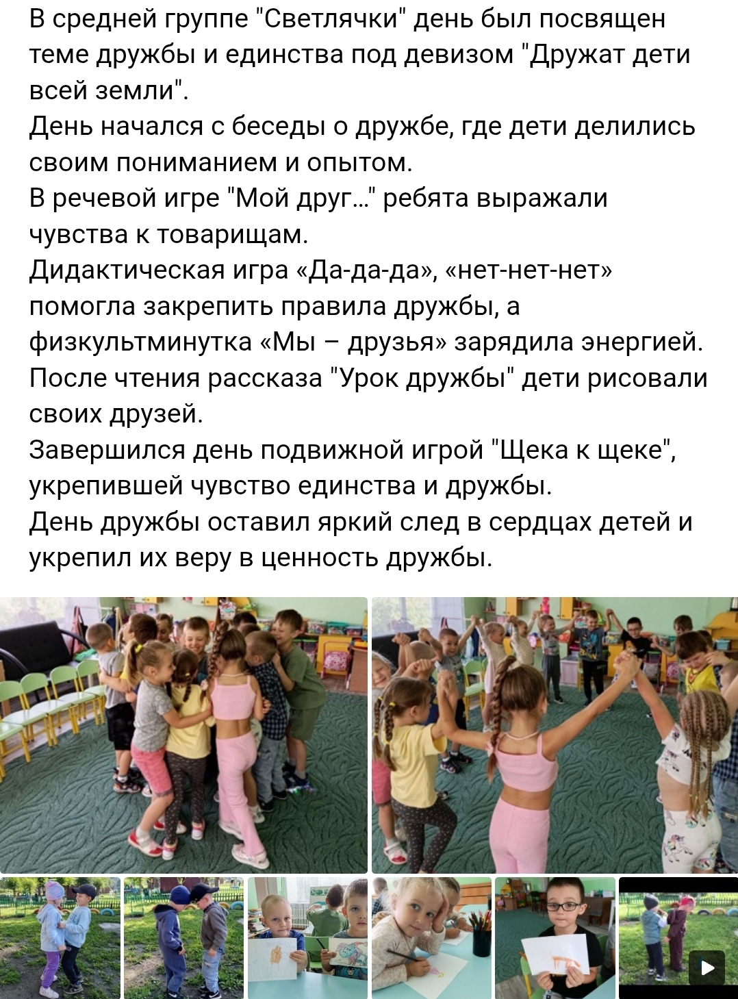"День дружбы" в средней группе "Светлячки"