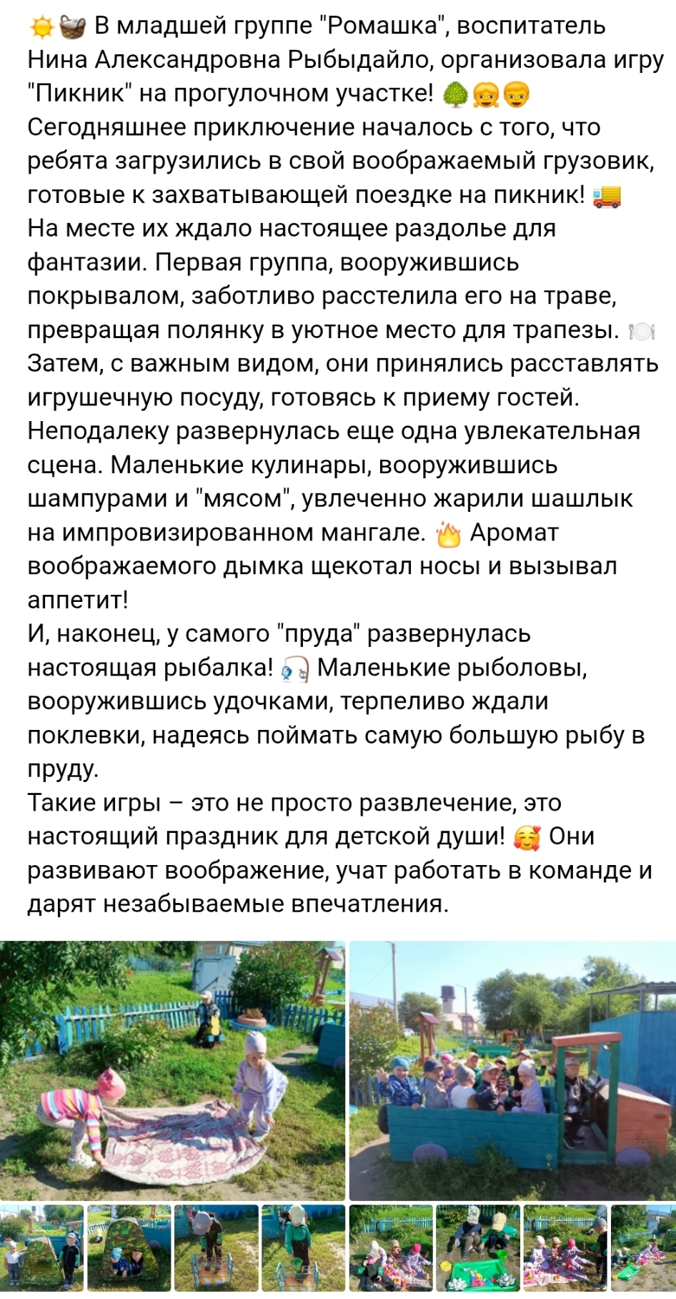 Сюжетно-ролевая игра в младшей группе "Пикник"