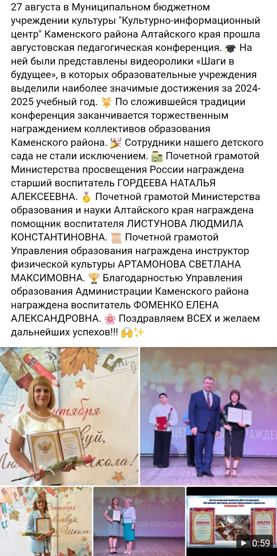 Сотрудников ДОУ наградили Почетными грамотами