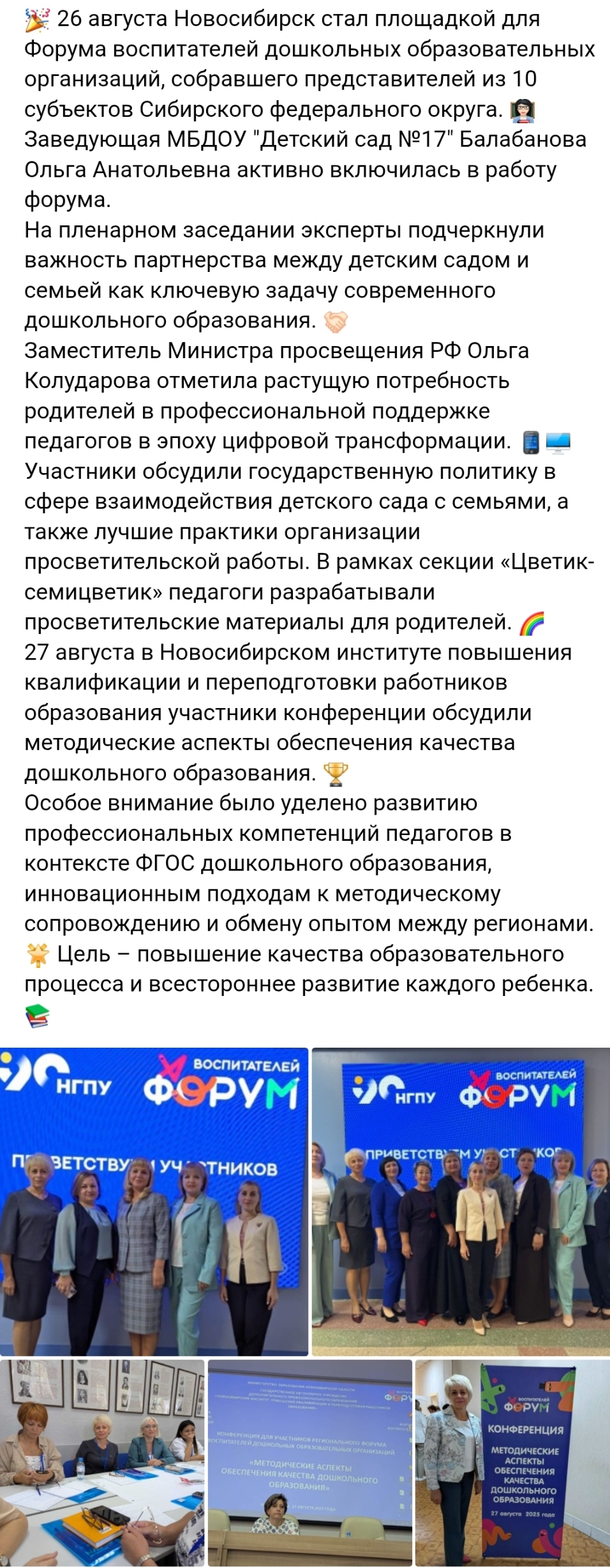 Заведующий ДОУ приняла участие во Всеросийском форуме в г.Новосибирск