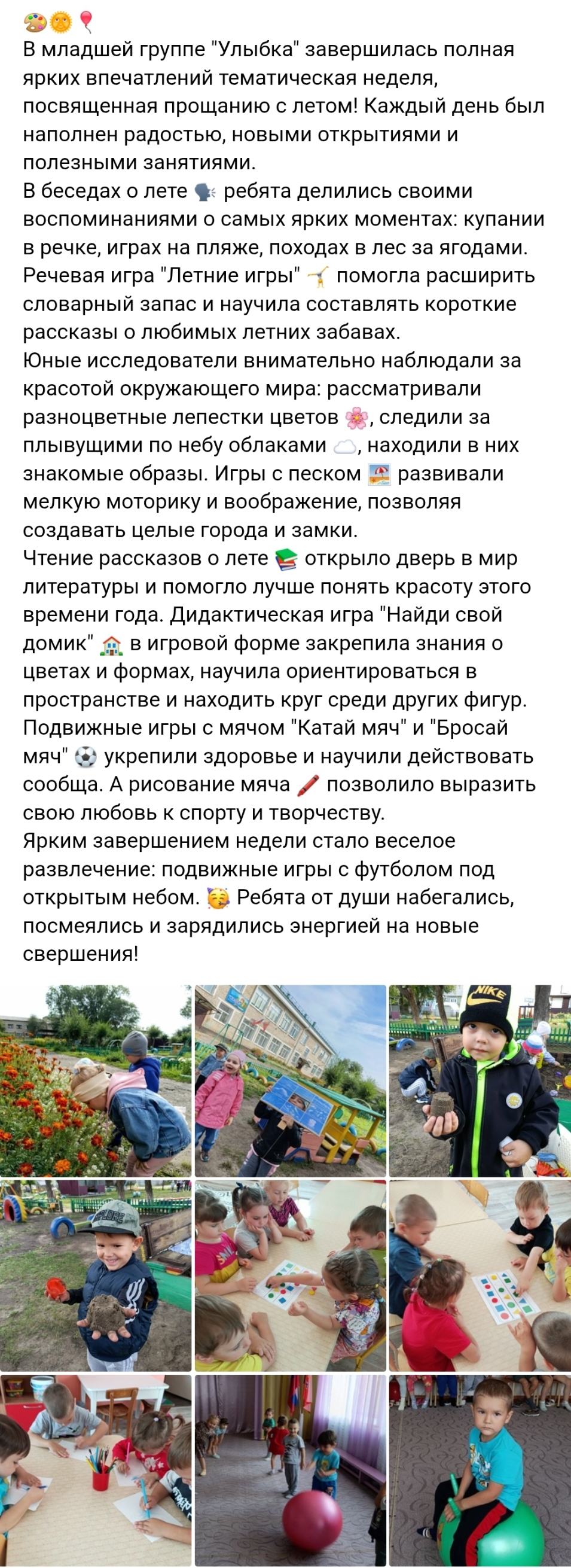 "Прощание с летом" в младшей группе "Улыбка"