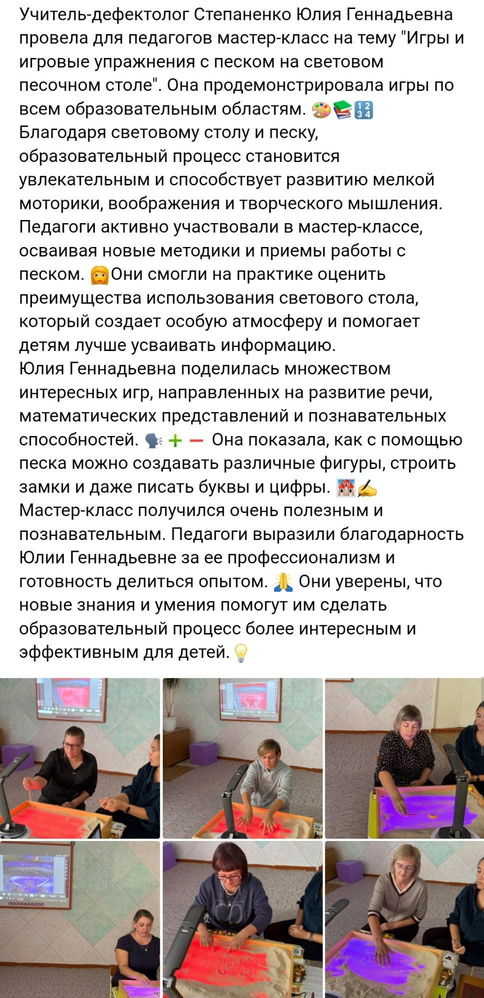 Мастер-класс для педагогов "Игры и упражнения с песком на световом столе"