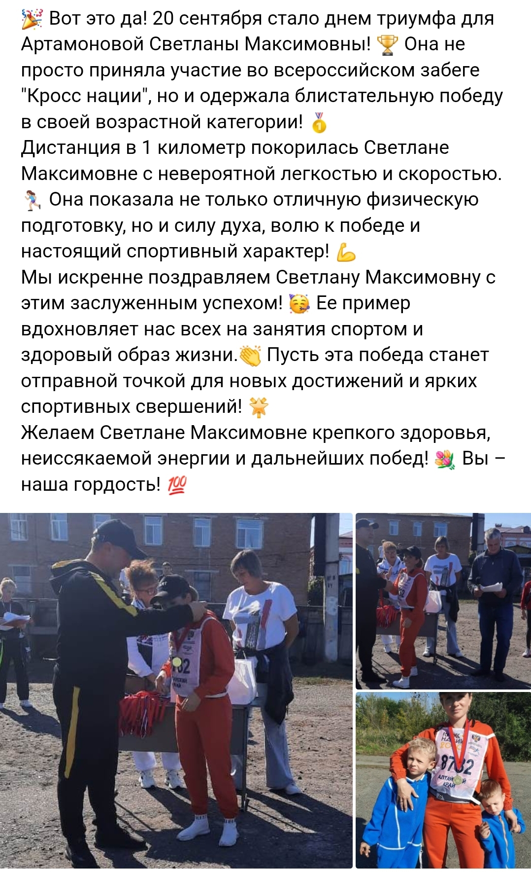 Инструктор по физической культуре одержала победу в "Кроссе нации"