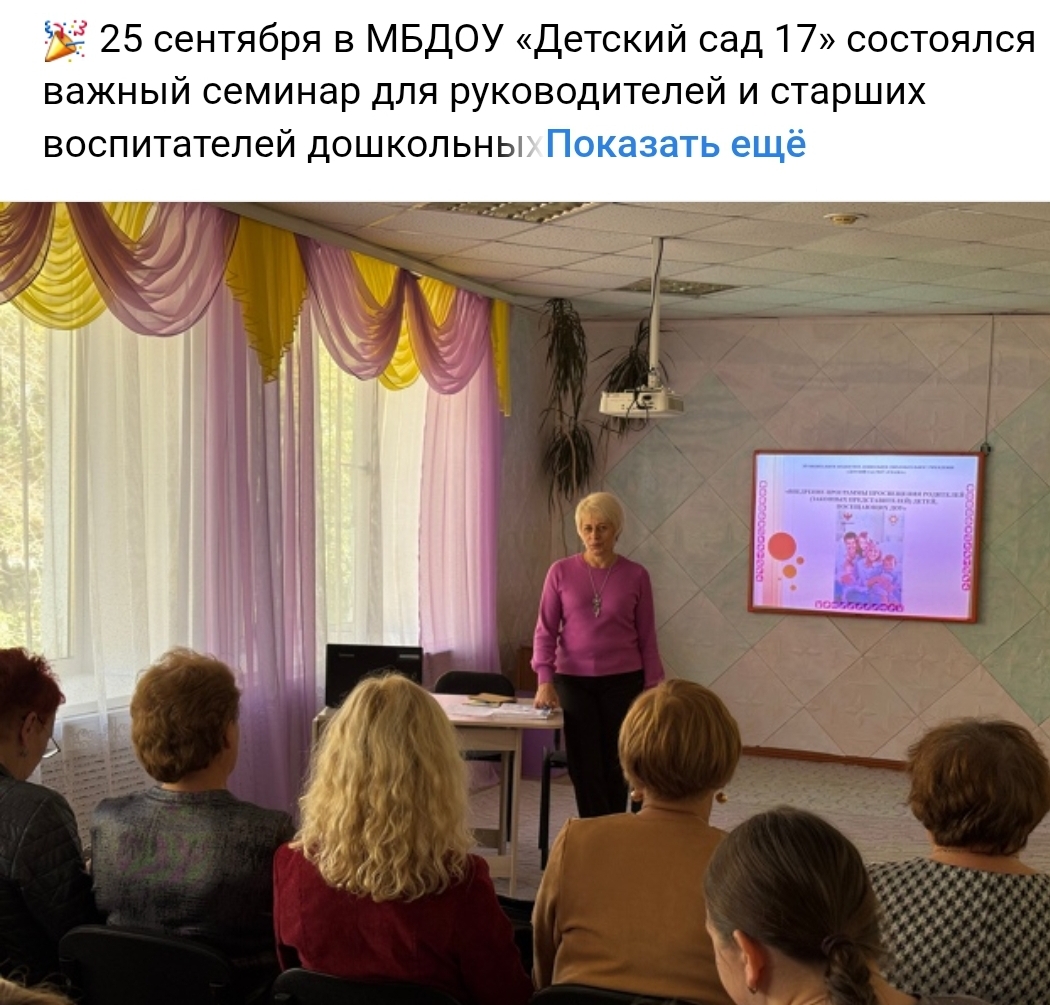 - На основании приказа Министерства образования и науки Алтайского края от 1 декабря 2024 МБДОУ «Детский сад №17» вошел в список региональных пилотных площадок по внедрению программы просветительской деятельности для родителей (законных представителей) детей, посещающих ДОУ.