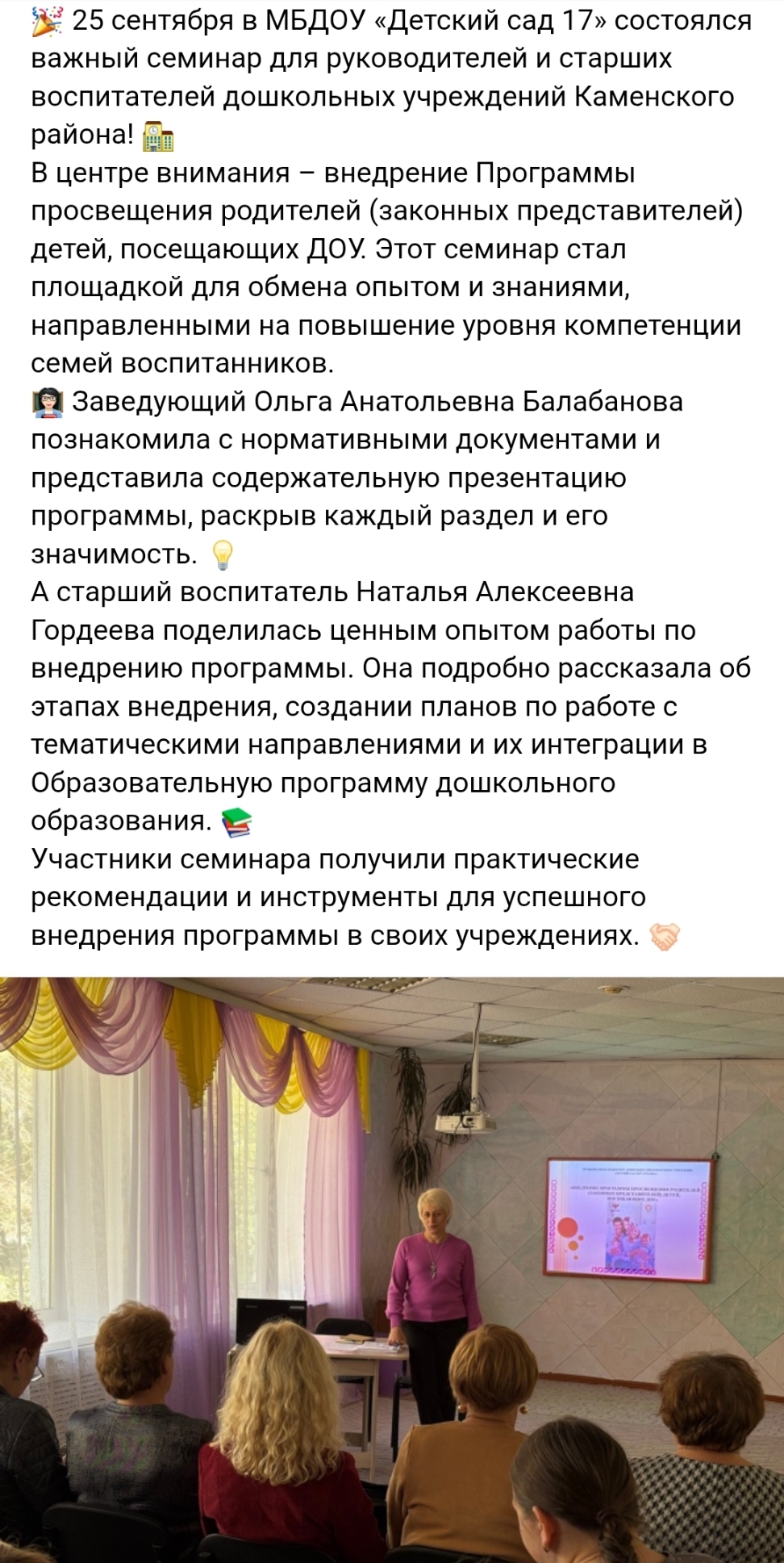 Семинар для заведующих и старших воспитателей дошкольных учреждений Каменского района